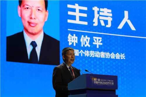 (中國個體勞動者協會會長鐘攸平主持大會)