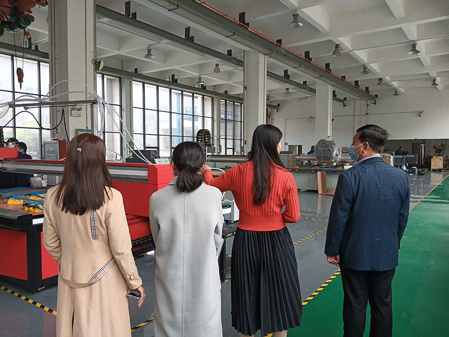 日出江花紅勝火,春來(lái)江水綠如藍(lán)。2021年4月13日,洛陽(yáng)市高新區(qū)人大領(lǐng)導(dǎo)一行人來(lái)我廠考察指導(dǎo)工作,重點(diǎn)參觀了我司的鈑金自動(dòng)化設(shè)備:涂膠設(shè)備、工業(yè)平板噴墨打印設(shè)備、焊接自動(dòng)化設(shè)備、工業(yè)機(jī)器人等,對(duì)我司的產(chǎn)品給予了肯定。詳細(xì)了解了數(shù)控自動(dòng)化設(shè)備的的應(yīng)用領(lǐng)域和新產(chǎn)品的研發(fā)工作,給予了充分地肯定與認(rèn)可。