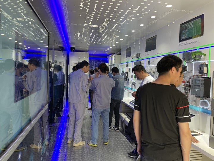 車廂內部展覽分為五大板塊,分別是智能配電、電機智能控制保護、智能樓宇、行業解決方案、數字化解決方案,充滿了科技感。武漢眾多企業代表、合作伙伴,絡繹不絕地走進車內觀展,西門子工作人員現場演示講解,生動展示了相應技術產品和行業解決方案,助力各級城市的電力公共事業、工業、基礎設施和樓宇客戶,實現更加高效、可靠、靈活和節能的可持續運營。